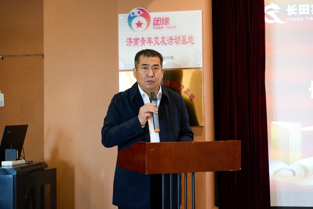 張總對各位領導、嘉賓的到來表示了熱烈的歡迎。他講到,長田書屋的誕生,源于我們對“全民閱讀”號召的響應、對“文化潤城”的樸素信仰。近年來,長田書屋通過持續(xù)舉辦讀書會、作家分享會、親子閱讀,參與“書香濟陽 閱見美好”全民閱讀月等各類文化活動,守護文化根脈、傳遞精神力量。長田實業(yè)也始終關注鄉(xiāng)村閱讀,去年在長田實踐教育基地設立了“長田董家鄉(xiāng)村書屋”,作為長田書屋的延伸。一方面將長田書屋豐富的圖書資源引入鄉(xiāng)村,另一方面將鄉(xiāng)村民俗等本土文化元素融入城區(qū)活動,推動城鄉(xiāng)閱讀陣地在資源共享中同頻共振。構建起“城市有陣地、鄉(xiāng)村有支點、全域有書香”的立體化閱讀網絡,讓文化的溫暖浸潤市民心田。長田書屋正式加入協(xié)會,成為濟陽區(qū)首家會員單位,是一份榮譽,更是一次“歸隊”。未來,長田書屋將緊跟協(xié)會步伐,讓優(yōu)質閱讀資源如活水般,流向濟陽的每個角落,助力全民閱讀走實走遠。