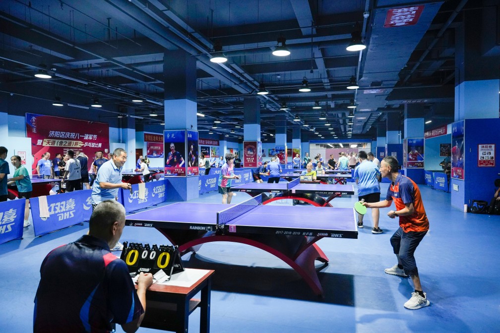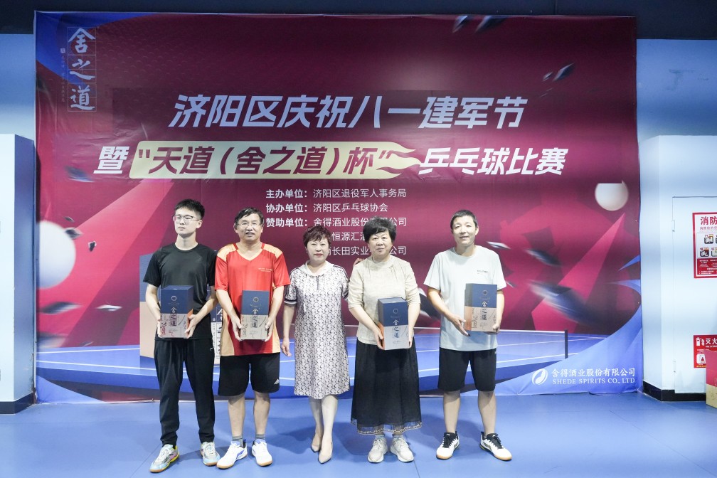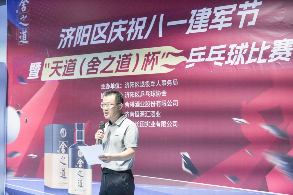 7月27日上午,濟(jì)陽區(qū)文化藝術(shù)中心乒乓球館內(nèi)熱鬧非凡,銀球在空中飛速穿梭,喝彩聲此起彼伏。由濟(jì)陽區(qū)退役軍人事務(wù)局主辦,區(qū)乒乓球協(xié)會承辦,濟(jì)南恒匯源酒業(yè)(舍得酒業(yè)股份有限公司)、濟(jì)南長田實業(yè)有限公司贊助的“慶祝八一建軍節(jié)暨‘天道 (舍之道) 杯’乒乓球比賽” 在此盛大啟幕。